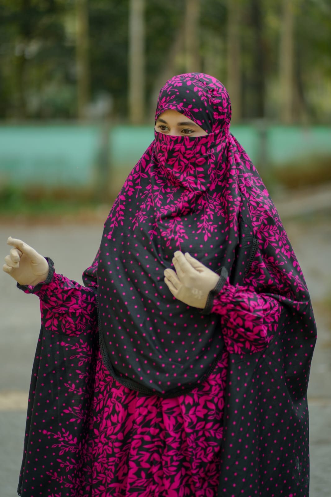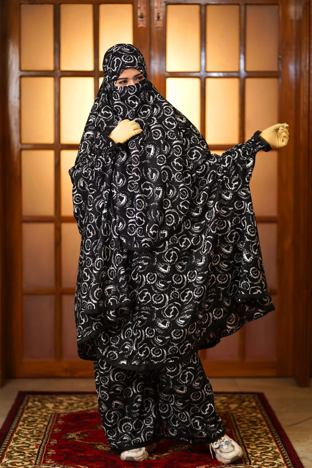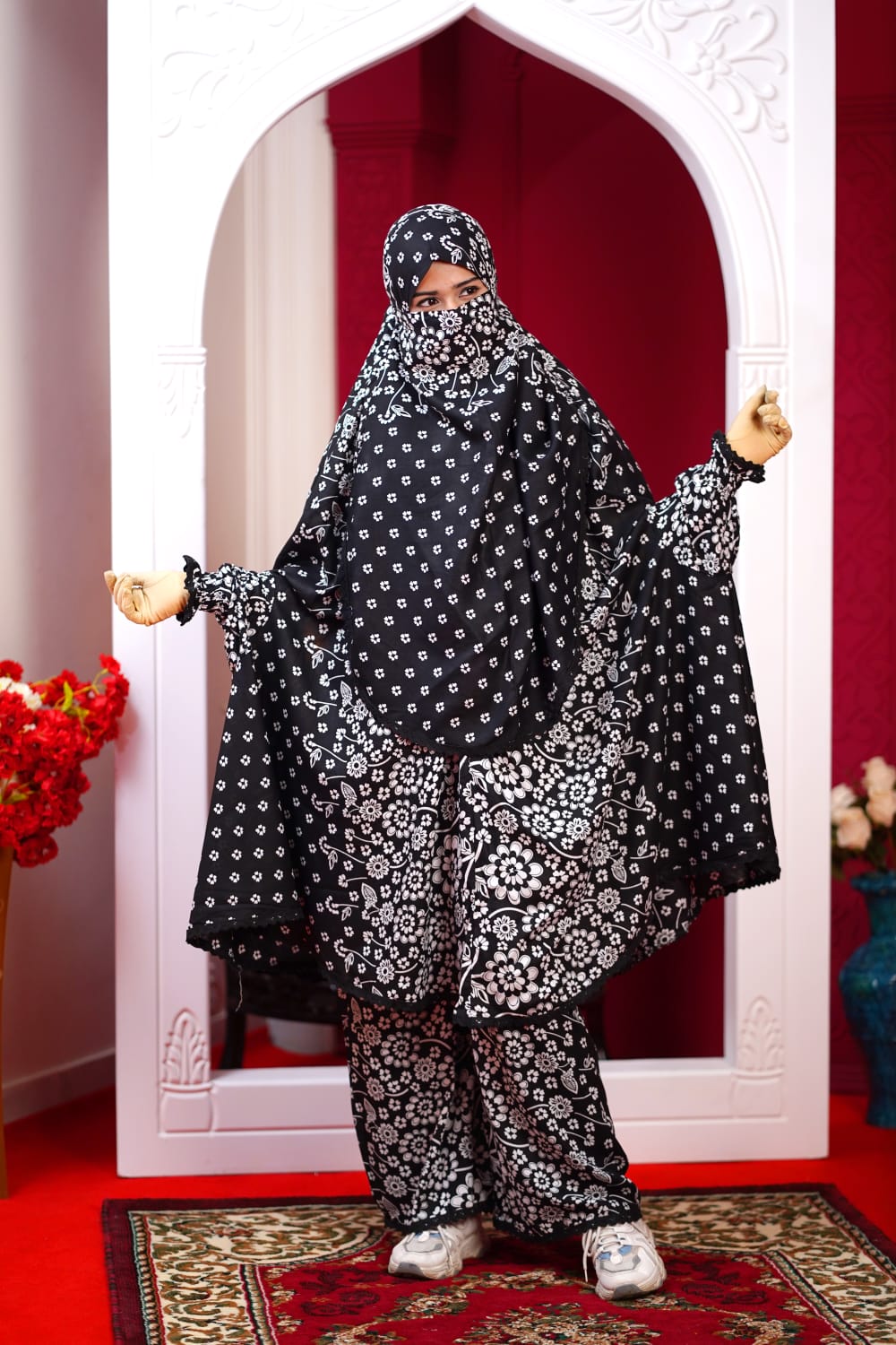 Charcoal Petal – Semi-Long Instant Ready Khimar